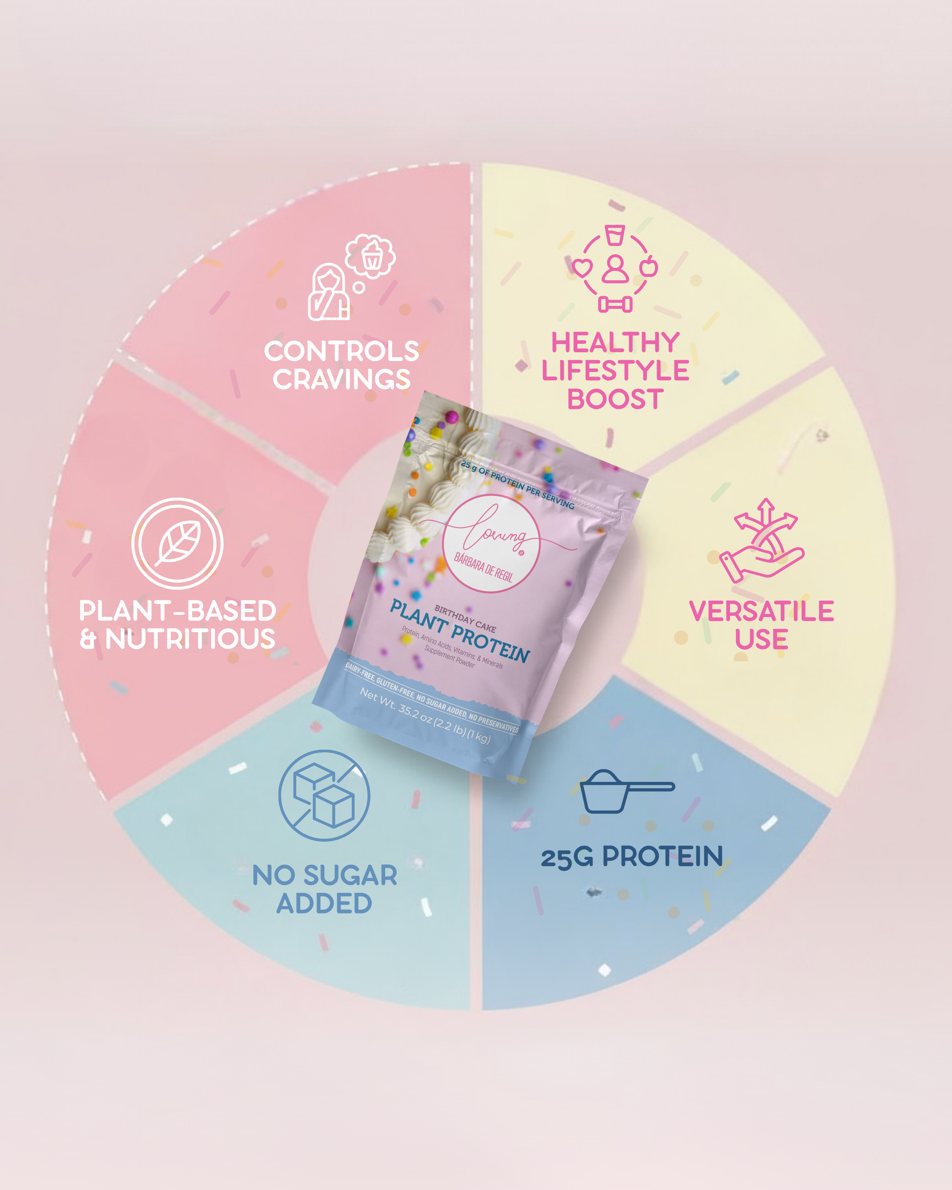 ¡Celebra tu cuerpo todos los días! Birthday Cake es el sabor más divertido y alegre de nuestra línea. Con notas de vainilla dulce y ese aroma a pastel recién horneado, es la motivación perfecta para levantarte y entrenar. Es ideal para quienes buscan un sabor dulce y reconfortante que rompa con la monotonía de la dieta tradicional.